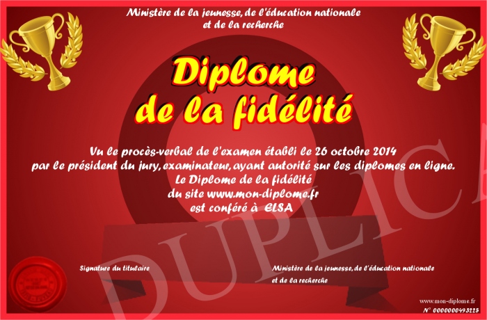 Envoyez par email votre Diplôme de la fidélité personalisé