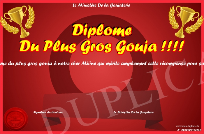 Envoyez par email votre Diplôme Du Plus Gros Gouja !!!! personalisé