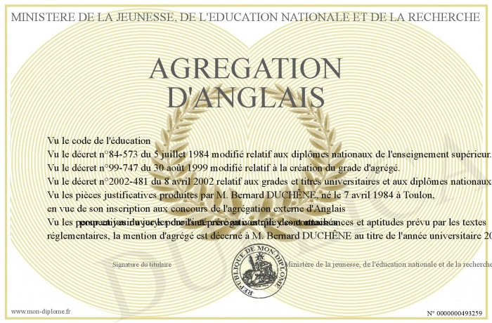 Envoyez par email votre Agrégation d'Anglais personalisé