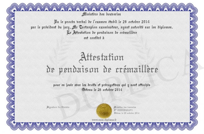 Envoyez par email votre Attestation de pendaison de crémaillère personalisé