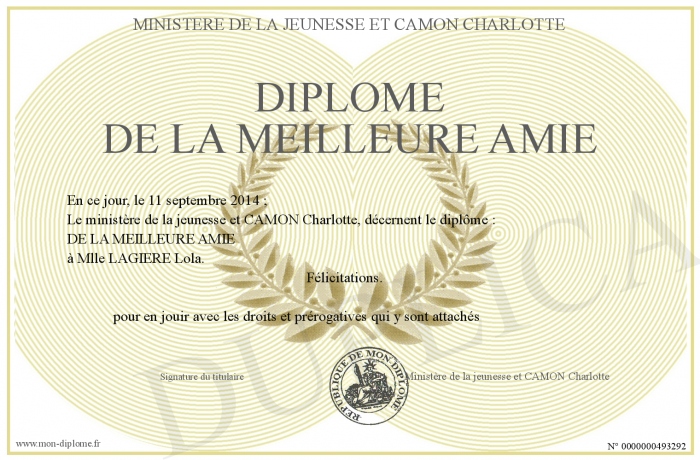 Envoyez par email votre Diplôme de la meilleure amie personalisé