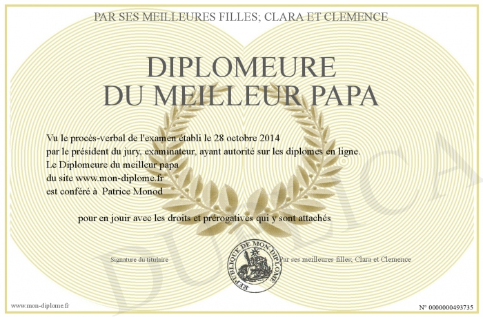 Envoyez par email votre Diplômeure du meilleur papa personalisé