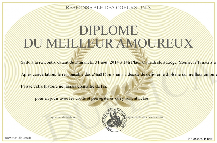 Envoyez par email votre Diplôme du meilleur amoureux personalisé