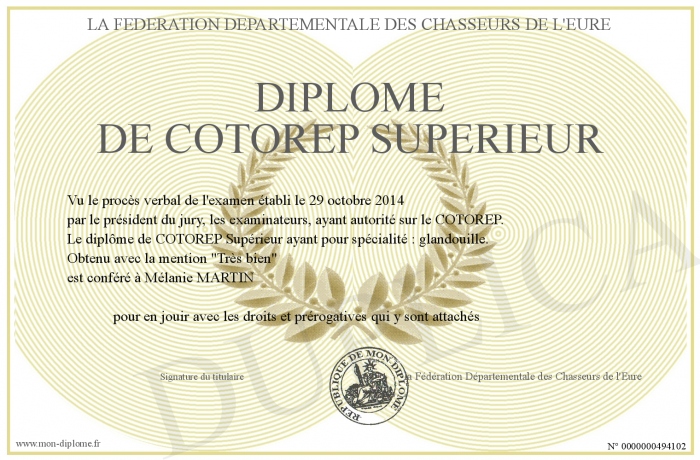 Envoyez par email votre Diplôme de COTOREP Supérieur personalisé