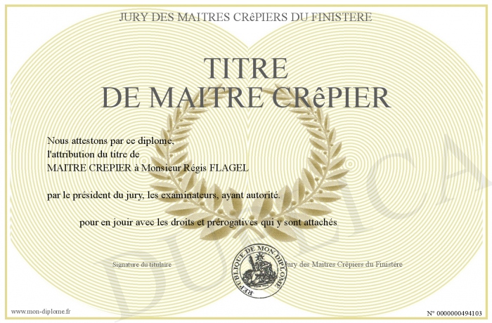 Envoyez par email votre Titre de Maitre Crêpier personalisé