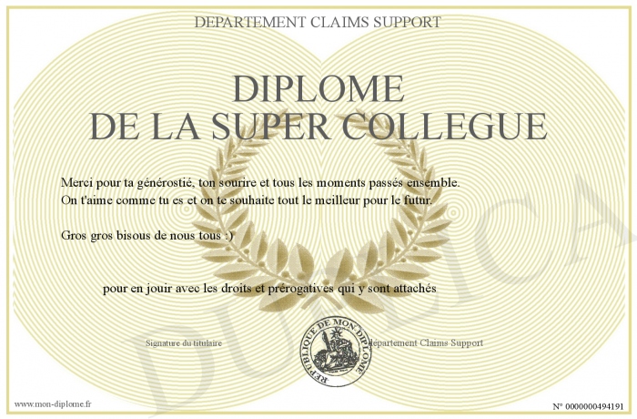 Envoyez par email votre Diplôme de la super collègue personalisé