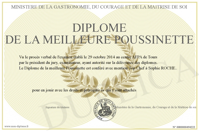 Envoyez par email votre Diplome de la meilleure Poussinette personalisé