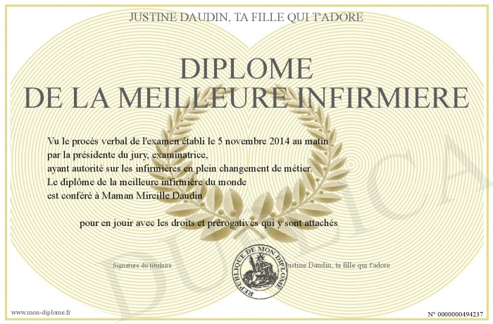 Envoyez par email votre Diplôme de la meilleure infirmière personalisé