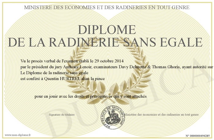 Envoyez par email votre Diplôme de la radinerie sans égale personalisé