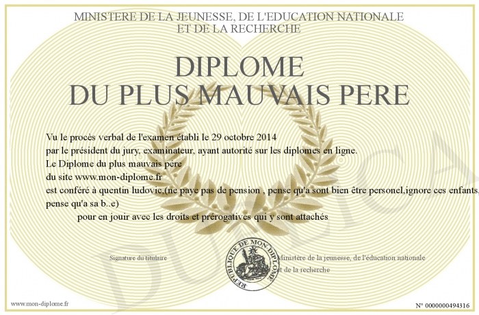 Envoyez par email votre Diplôme du plus mauvais pére personalisé