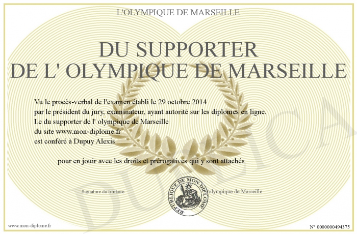 Envoyez par email votre du supporter de l' olympique de Marseille personalisé