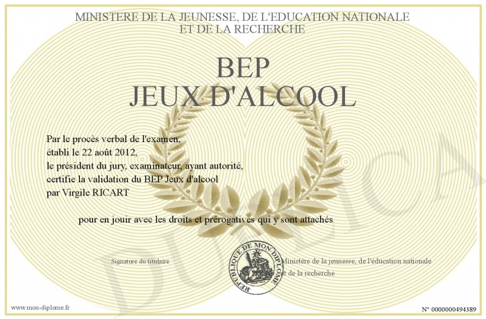 Envoyez par email votre BEP Jeux d'alcool personalisé
