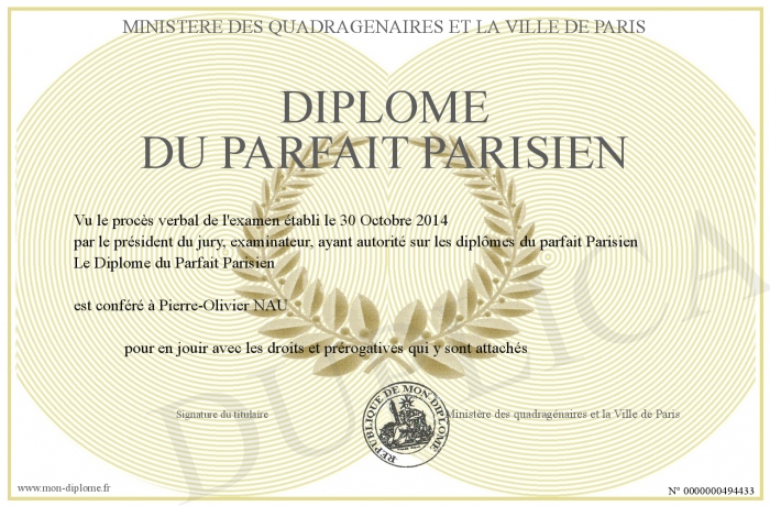 Envoyez par email votre Diplôme du Parfait Parisien personalisé