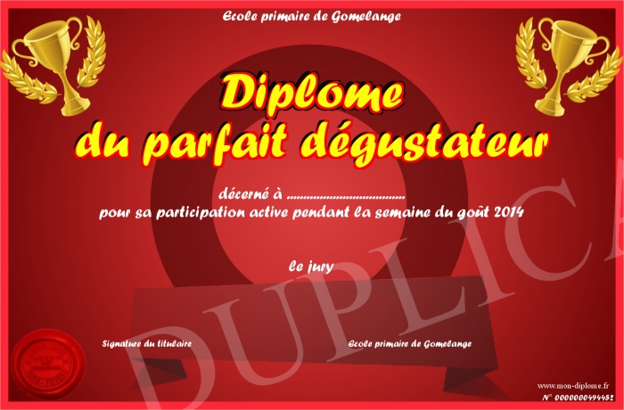 Envoyez par email votre Diplôme du parfait dégustateur personalisé