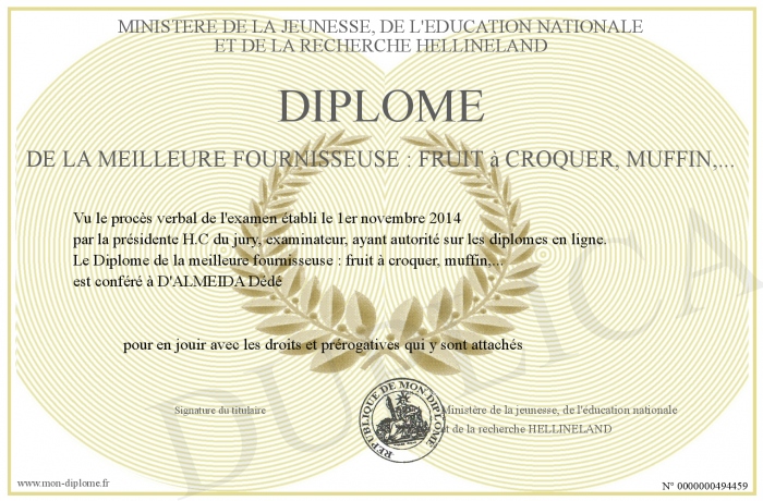 Envoyez par email votre Diplôme de la meilleure fournisseuse : fruit à croquer, muffin,... personalisé