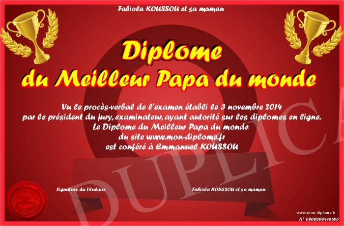 Envoyez par email votre Diplôme du Meilleur Papa du monde personalisé
