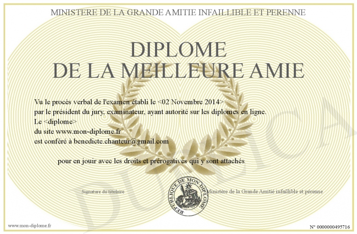 Envoyez par email votre Diplôme de la MEILLEURE AMIE personalisé