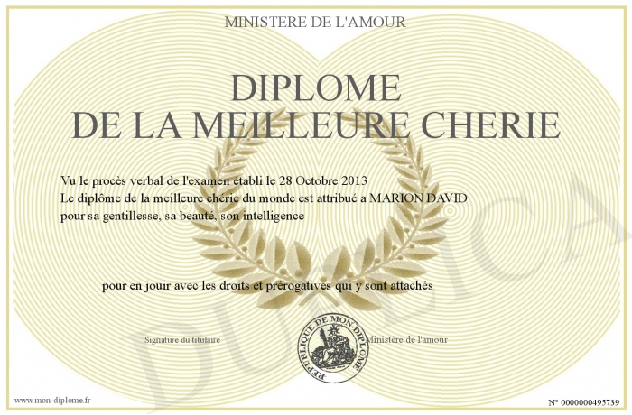 Envoyez par email votre Diplôme de la meilleure chérie personalisé