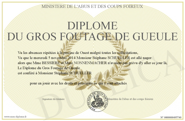 Envoyez par email votre Diplôme du Gros Foutage de Gueule personalisé