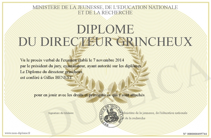 Envoyez par email votre Diplôme du directeur grincheux personalisé