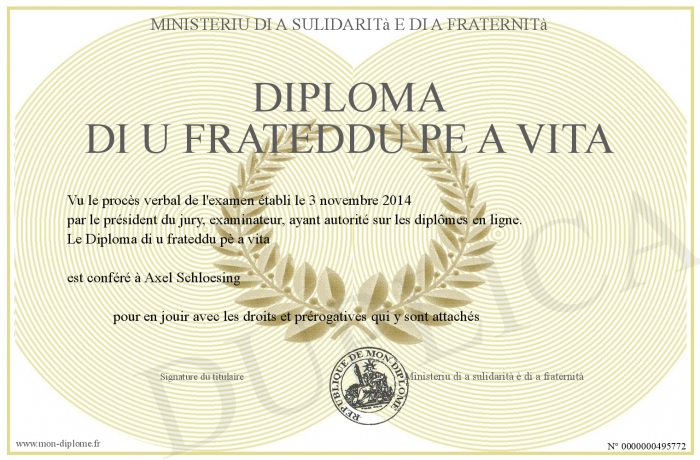 Envoyez par email votre Diploma di u frateddu pè a vita personalisé