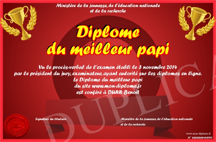 Envoyez par email votre Diplôme du meilleur papi personalisé