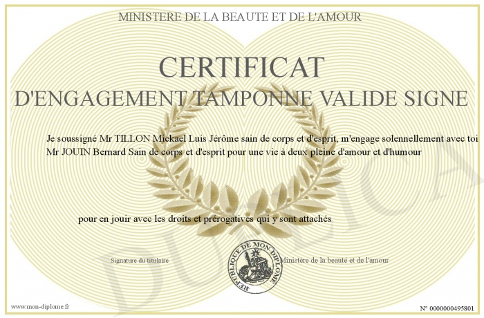 Envoyez par email votre Certificat d'engagement tamponné validé signé personalisé
