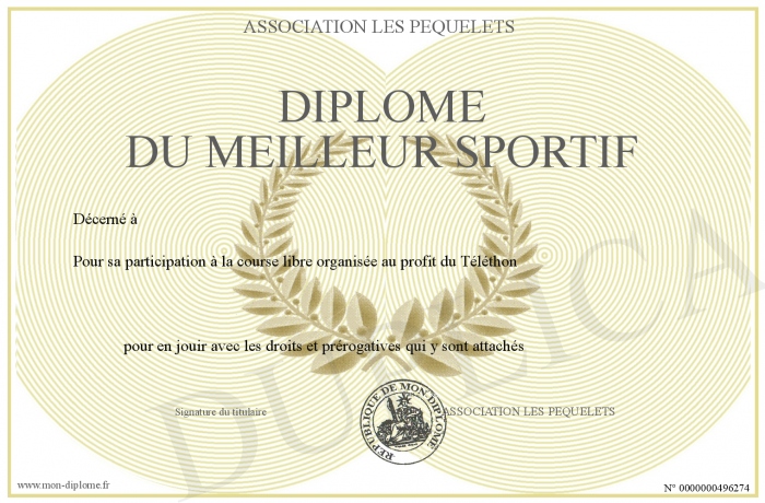 Envoyez par email votre Diplôme du meilleur sportif personalisé