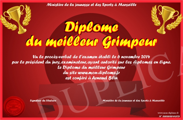 Envoyez par email votre Diplôme du meilleur Grimpeur personalisé