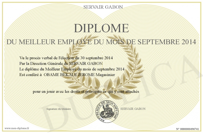 Envoyez par email votre Diplôme du meilleur employé du mois de septembre 2014 personalisé