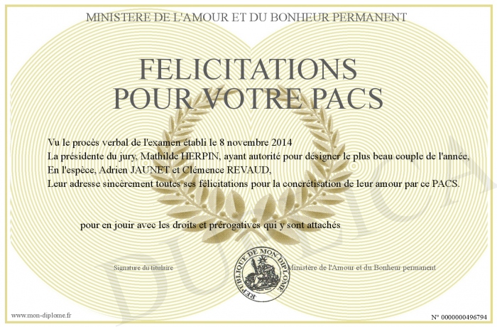 Envoyez par email votre Félicitations pour votre PACS personalisé