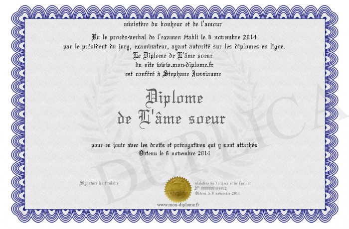Envoyez par email votre Diplôme de L'âme soeur personalisé