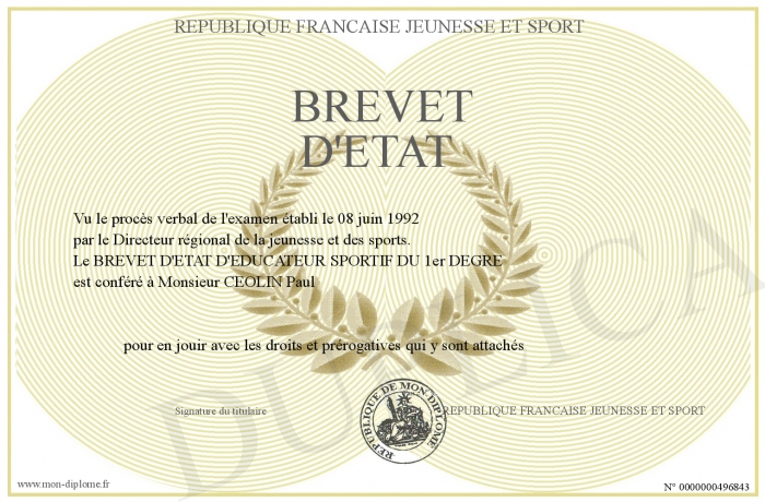 Envoyez par email votre BREVET D'ETAT personalisé