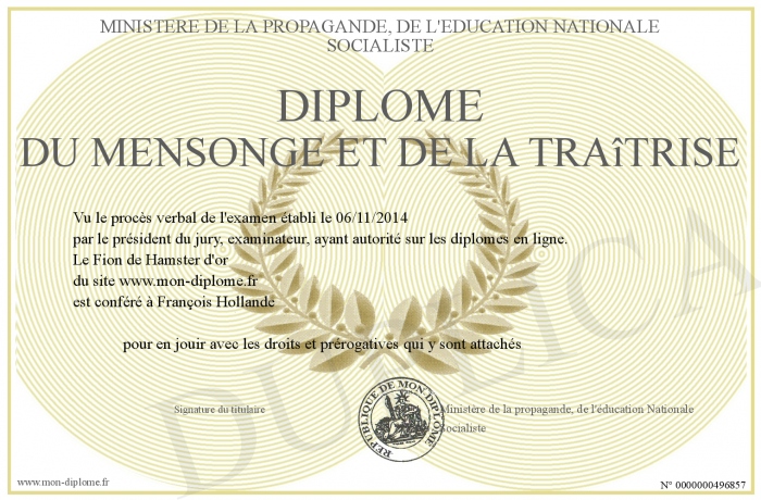 Envoyez par email votre Diplôme du Mensonge et de la Traîtrise personalisé