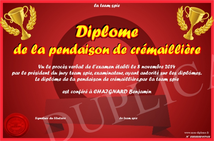 Envoyez par email votre Diplôme de la pendaison de crémaillière personalisé