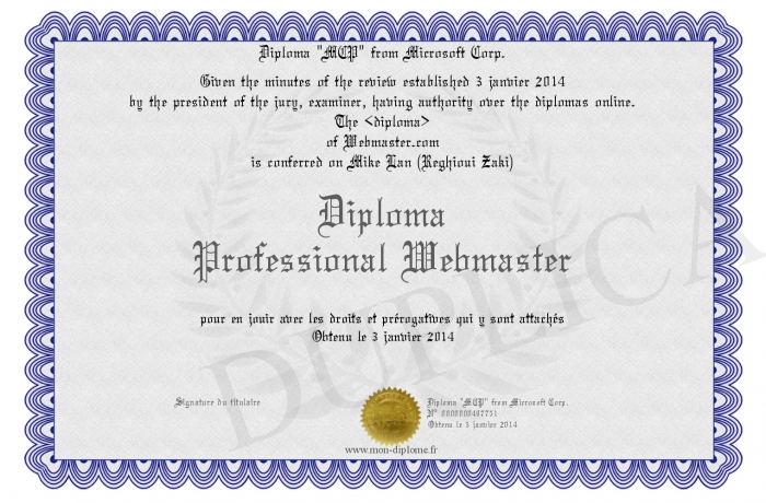 envoyé par le Diploma -MCP- from Microsoft Corp. !