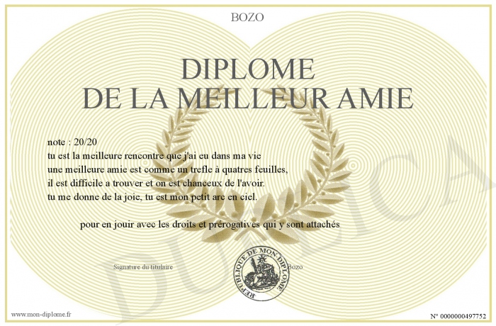 Envoyez par email votre diplome de la meilleur amie personalisé