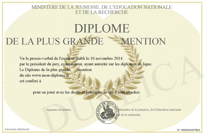 Envoyez par email votre Diplôme de la plus grande mention personalisé