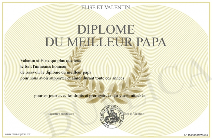 Envoyez par email votre Diplome du meilleur papa personalisé