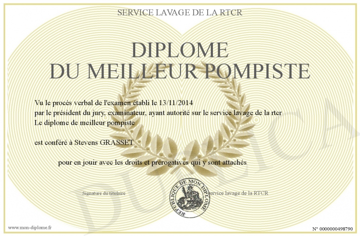 Envoyez par email votre Diplôme du meilleur pompiste personalisé
