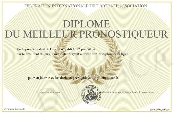 Envoyez par email votre Diplôme du meilleur pronostiqueur personalisé