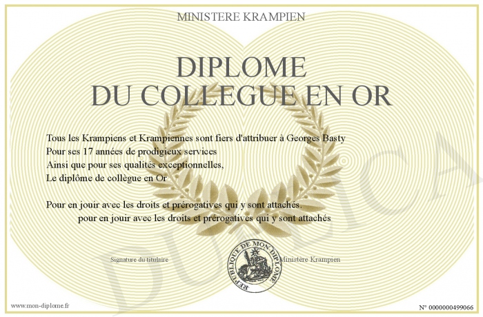 Envoyez par email votre Diplôme du collègue en Or personalisé