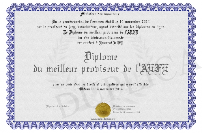 Envoyez par email votre Diplôme du meilleur proviseur de l'AEFE personalisé