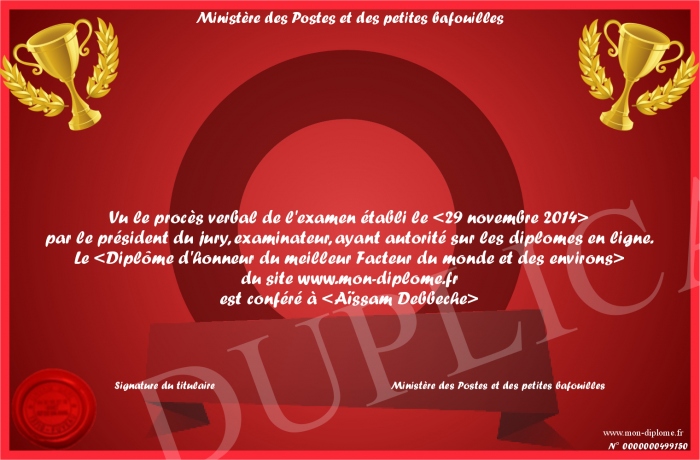 envoyé par le Ministère des Postes et des petites bafouilles !