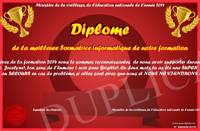Envoyez par email votre Diplôme de la meilleure Formatrice informatique de notre formation personalisé
