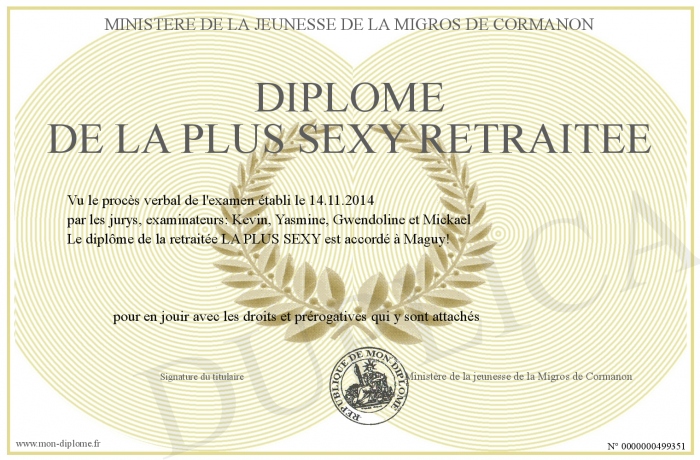 Envoyez par email votre Diplôme de la plus sexy retraitée personalisé