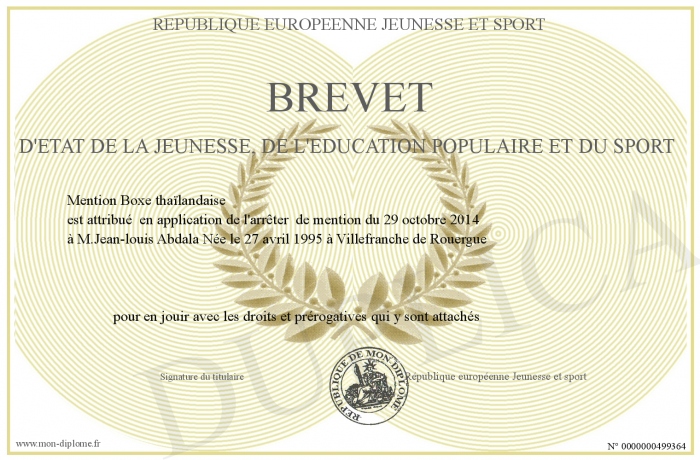 Envoyez par email votre Brevet D'Etat de la jeunesse, de l'éducation populaire et du sport personalisé