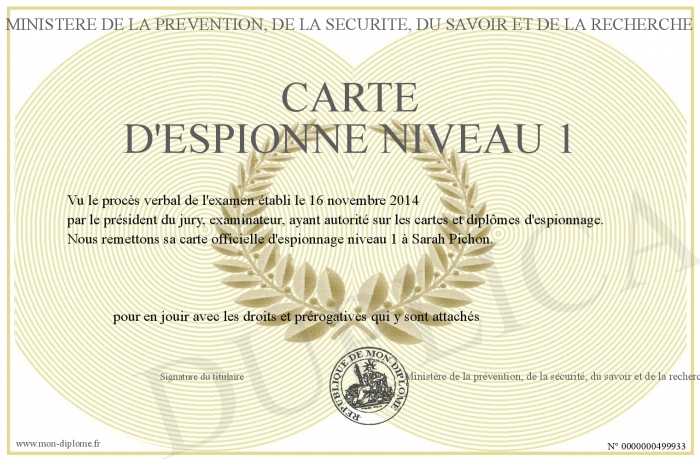 Envoyez par email votre carte d'espionne niveau 1 personalisé