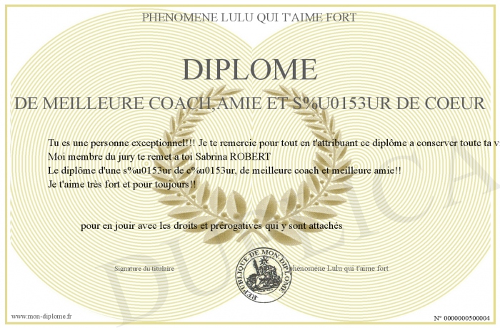 Envoyez par email votre Diplôme de meilleure coach,amie et soeur de coeur personalisé