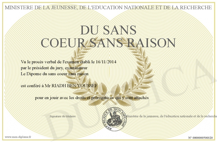Envoyez par email votre DU SANS COEUR SANS RAISON personalisé